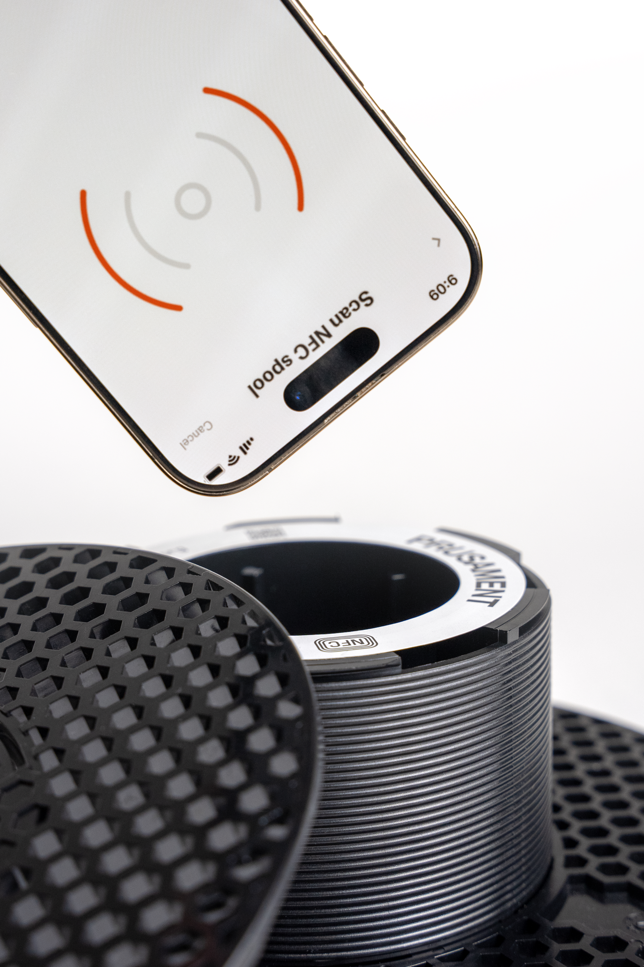 A smart spool carries all the important information about the material and its workflow, unlocking key features:
